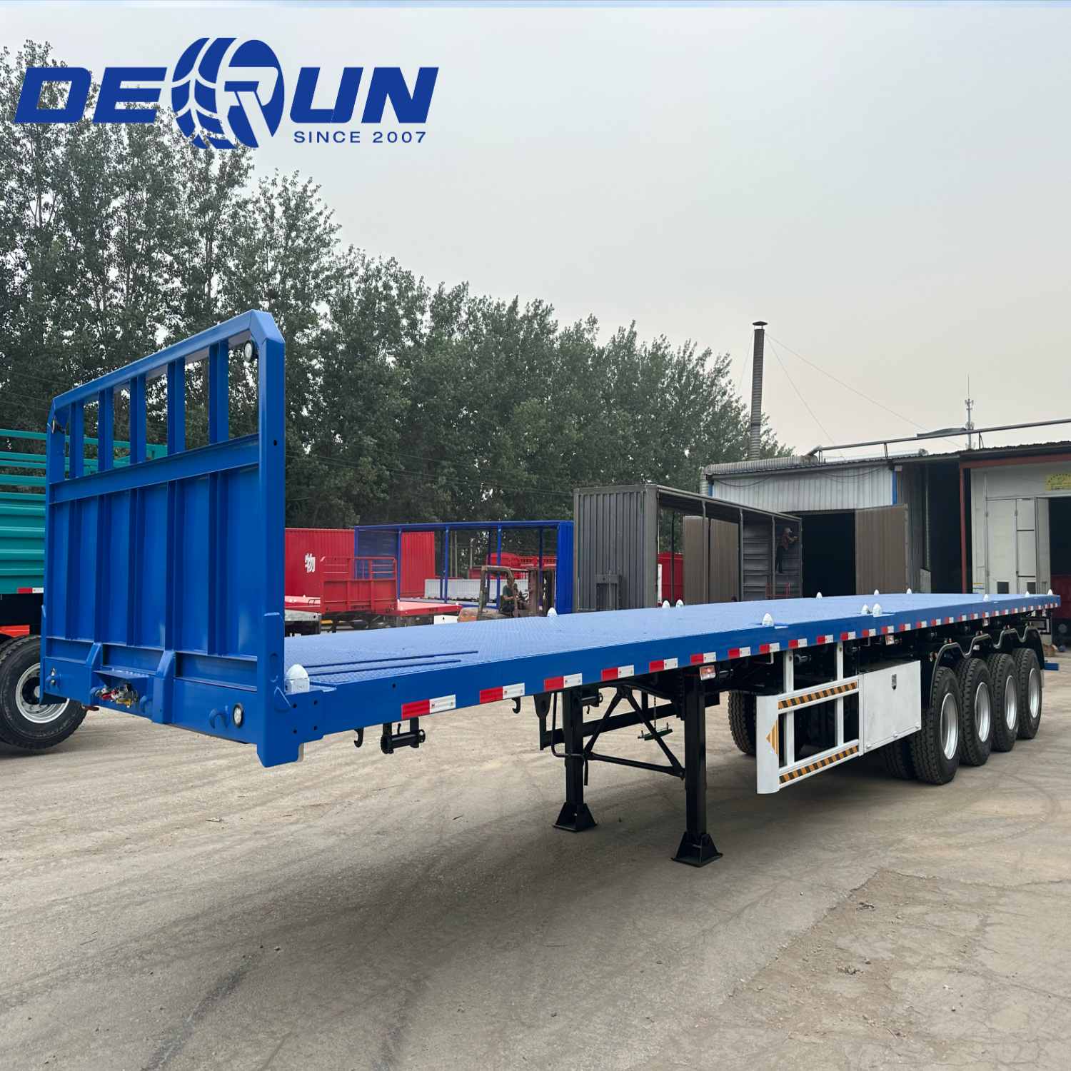 Pre 4-nápravný plochý semifiná, je to druh vysokokvalitného prívesu s vysokým obsahom kapacity, ktorý je vhodný pre rôzne prepravu ťažkej nákladu. Four Flatbed Flatbed Semi Traily prijíma na výrobu rámu vysoko pevnú oceľ a pozdĺžne lúče a krížové lúče sa zvárajú, aby sa vytvorila štruktúra rámu v pevnom priestore, ktorá zaisťuje vysokú kapacitu nosenia. Jeho zavesenie je nezávislým odpružením pružiny oceľovej dosky s vysokou pevnosťou a odporom nárazu, čo môže účinne znížiť kapacitu nakladania v pneumatikách. Zároveň je vybavený systémom vzduchovej brzdy s duálnym obvodom a voliteľným protiblokovacím systémom ABS, aby sa zaistila bezpečnosť jazdy. Štyri nápravná plošina poloprevádza je vhodná na výstavbu, ťažbu, logistiku a iné priemyselné odvetvia, schopné prepravovať všetky druhy veľkých zariadení, ako sú rýpadlá, buldozéry, žeriavy atď., Ako aj silné objemové náklady, ako sú rudy a uhlie.