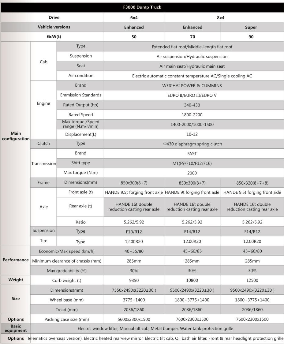 Shacman F3000 6x4 8x4 sklápací nákladný automobil má vysokú adaptabilitu: nízko-rýchlostný, vysokorýchlostný motor dodáva rýchly štart a vynikajúcu schopnosť horolezectva prispôsobiť sa všetkým druhom tvrdých inžinierskych podmienok. Optimalizáciou dizajnu chladiaceho a výfukového systému sa zvyšuje svetlá výška F3000, čím sa lepšie prispôsobuje špeciálnym cestným podmienkam.