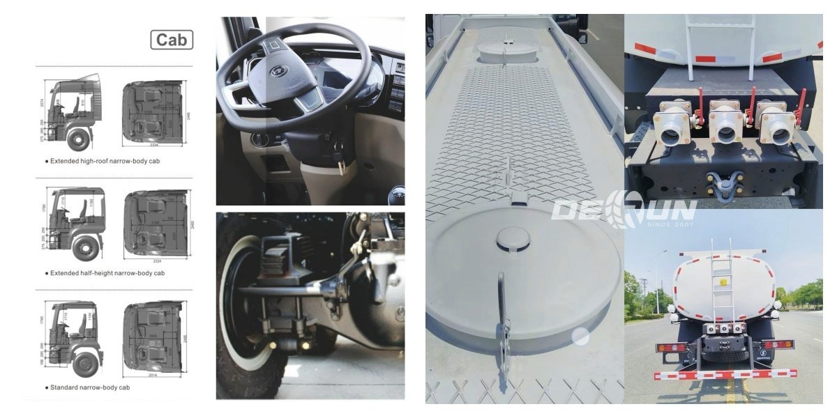 Shacman H3000 6x4 Tank Tank Truck Truck Truck je vysokoúčinný postrekovací nákladný automobil navrhnutý pre potreby hygieny a terénnych úprav od spoločnosti Shaanqi Group, ktorý sa stal ideálnou voľbou pre údržbu mestského prostredia vďaka svojej vynikajúcej výkonnosti a spoľahlivej kvalite. Jeho vzhľad prijíma efektívny návrh tela, znižuje odolnosť proti vetru a zároveň zlepšuje spotrebu paliva, kabína je priestranná a pohodlná, s bohatými vnútornými konfiguráciami a poskytuje prevádzkovateľovi dobré pracovné prostredie.